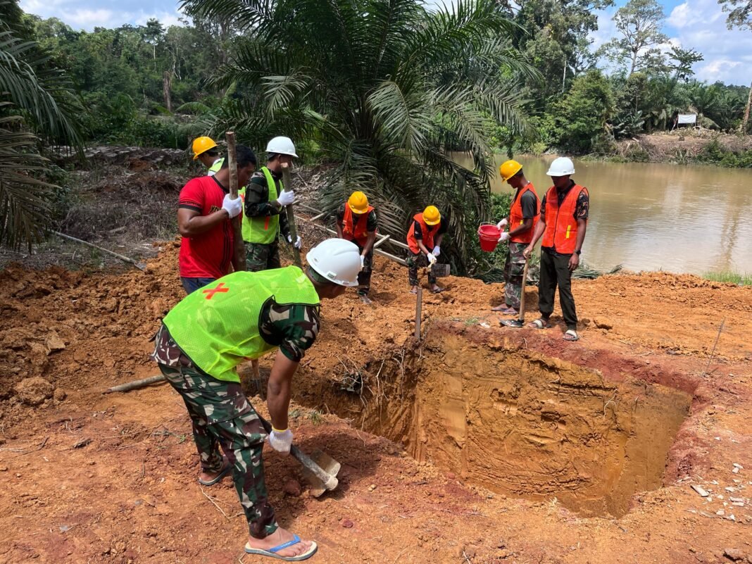 Kotawaringin Timur – Proses pembangunan Jembatan Garuda di Desa Tukang Langit, Kecamatan Telaga Antang, Kabupaten Kotawaringin Timur, kini menunjukkan kemajuan yang signifikan. Hal ini terlihat pada Rabu (15/04/2026) ketika personel dari Kodim 1015/Sampit bersinergi dengan masyarakat setempat untuk melaksanakan penggalian lubang pondasi, yang merupakan langkah awal dalam pembangunan jembatan yang sangat dinantikan tersebut.