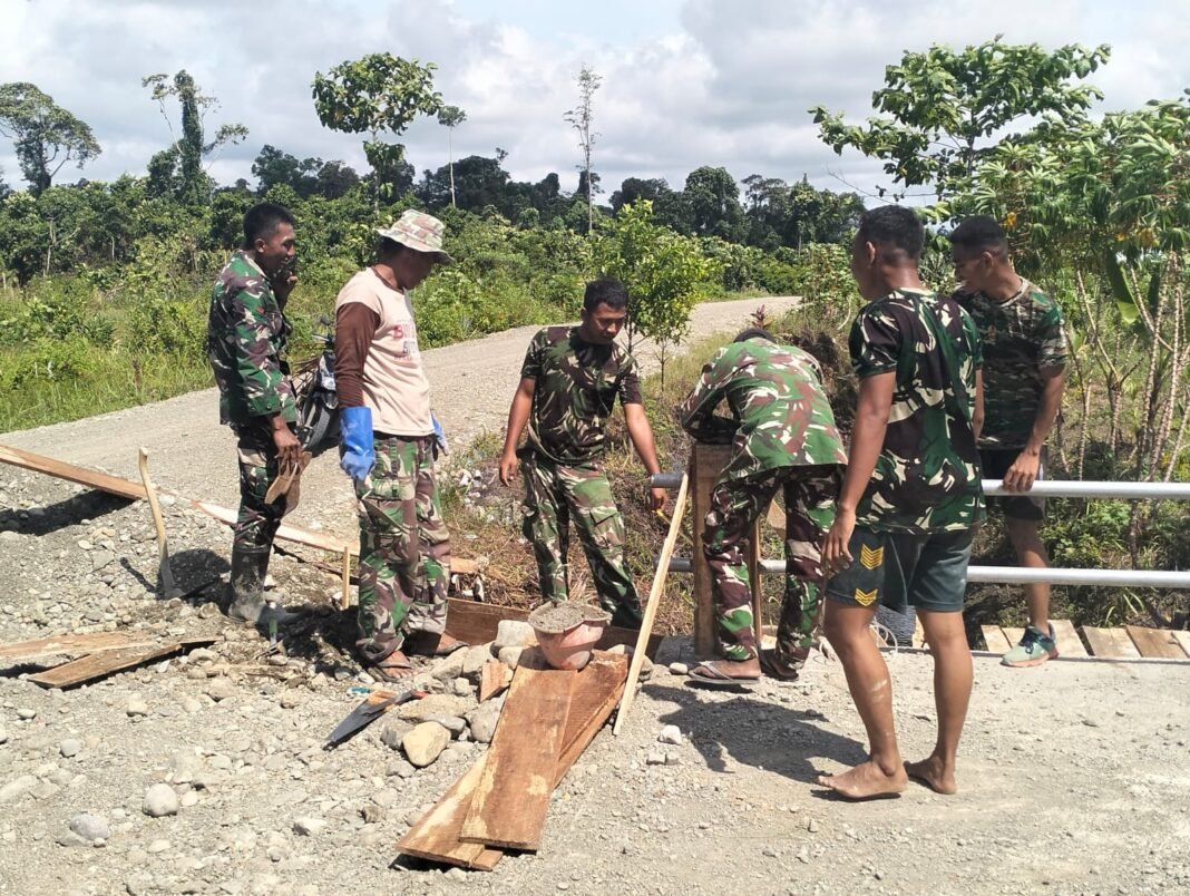 Pengerjaan pagar jembatan ini sangat penting untuk menjamin keamanan dan kenyamanan bagi masyarakat saat melintasi jembatan nantinya. Dengan semangat kolaborasi dan komitmen tinggi, anggota Kodim 1705/Nabire bekerja sama dengan masyarakat setempat untuk menyelesaikan setiap tahap pekerjaan dengan sebaik-baiknya.