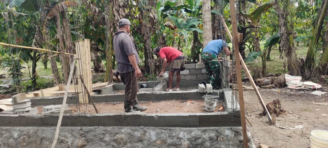 Tolitoli – Program TNI Manunggal Membangun Desa (TMMD) ke-127 yang dilaksanakan di Desa Oyom menunjukkan kemajuan yang signifikan. Pada Sabtu, 21 Februari 2026, Satuan Tugas (Satgas) TMMD dari Kodim 1305/Buol Tolitoli melanjutkan pengerjaan pembangunan tempat mandi, cuci, dan kakus (MCK) di area tersebut.