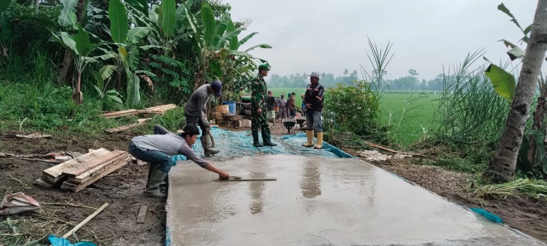 Desa Gunung Rejo, Kecamatan Way Khilau, Kabupaten Pesawaran, Provinsi Lampung – Proyek pembangunan rabat beton yang dilaksanakan dalam program TMMD ke-127 oleh Kodim 0421/LS telah memasuki tahap penting. Meskipun saat ini lokasi masih dalam keadaan becek dan pekerjaan belum sepenuhnya selesai, diharapkan infrastruktur ini segera rampung sehingga dapat memberikan akses yang lebih baik bagi masyarakat.