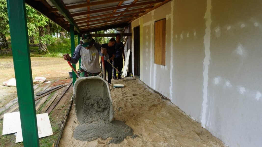 Kotawaringin Timur – Proyek TNI Manunggal Membangun Desa (TMMD) ke-127 menunjukkan kemajuan yang signifikan di Desa Bukit Indah, Kecamatan Telaga Antang, Kabupaten Kotawaringin Timur. Salah satu fokus utama dari program ini adalah pembangunan Rumah Tidak Layak Huni (RTLH) milik Ibu Tuminah, yang kini sedang dalam tahap pengerjaan. Kegiatan ini berlangsung pada Jumat, 6 Maret 2026.
