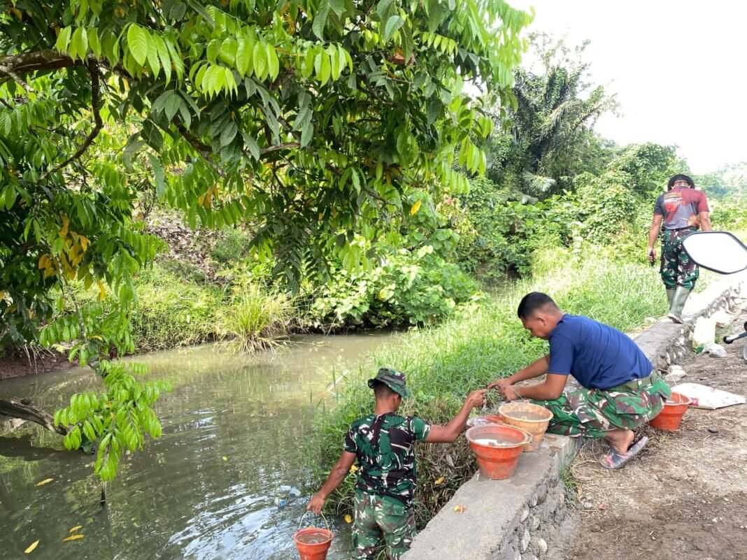 Dalam pelaksanaan proyek ini, anggota Satgas TMMD bekerja sama dengan masyarakat setempat, saling bahu-membahu dalam menyusun batu, mendirikan pondasi, dan melakukan pengecoran untuk memastikan bahwa talud yang dibangun memiliki daya tahan yang baik.