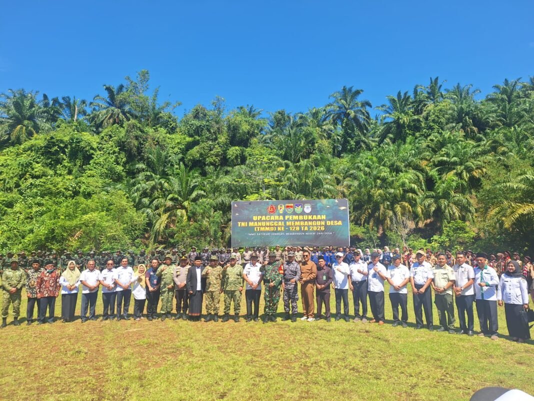 Seluma – Kodim 0425/Seluma telah resmi melaksanakan upacara pembukaan program TNI Manunggal Membangun Desa (TMMD) ke-128 Tahun 2026 yang bertempat di lapangan sepak bola Desa Lubuk Lagan, Kecamatan Talo Kecil, Kabupaten Seluma, pada Rabu (22/04/2026). Upacara tersebut berlangsung dengan penuh khidmat dan dihadiri oleh berbagai pihak, termasuk Bupati Seluma Teddy Rahman, Kasiter Korem 041/Gamas Kolonel Inf Eko Prasetyo sebagai perwakilan Danrem 041/Gamas, jajaran Satgas TMMD, serta unsur Forkopimda, pelajar, dan masyarakat setempat.