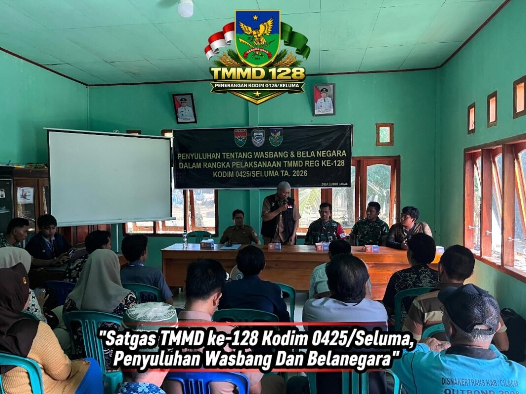 Seluma, Rabu 29 April 2026 — Untuk mendukung kegiatan non-fisik dalam program TMMD ke-128, Satgas TMMD Kodim 0425/Seluma telah melaksanakan penyuluhan Wawasan Kebangsaan dan Bela Negara di Desa Lubuk Lagan, Kecamatan Talo Kecil. Kegiatan ini bertujuan untuk memperkaya wawasan masyarakat mengenai kebangsaan.