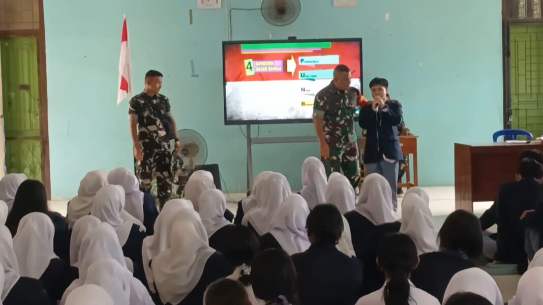 Pangkalan Banteng – Dalam rangka program TMMD Ke-128, Kodim 1014/Pbn melaksanakan kegiatan sosialisasi wawasan kebangsaan untuk siswa-siswi SMAN 1 Pangkalan Banteng pada Senin (27/04/2026). Kegiatan ini dipimpin oleh Dandim 1014/Pbn dengan tujuan utama untuk memperkenalkan nilai-nilai cinta tanah air sejak usia dini kepada pelajar.