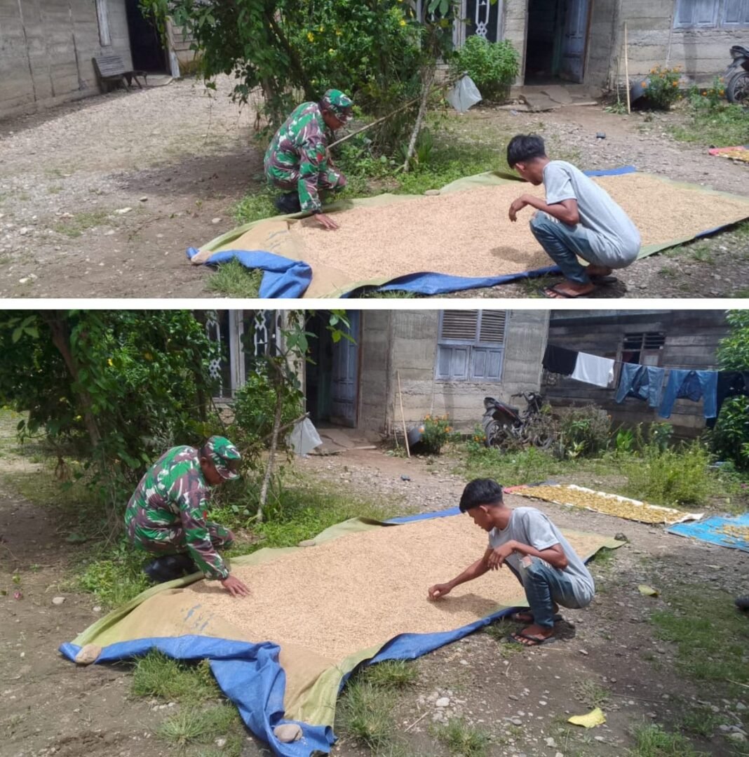 Petani Desa Karak Terbantu Kehadiran Babinsa Saat Menjemur Bibit Padi