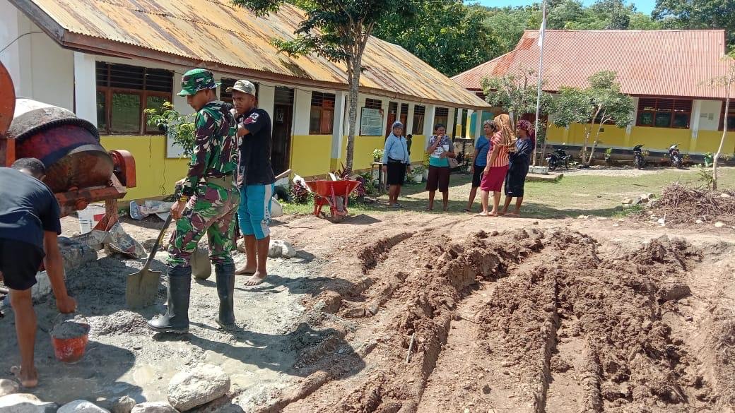 Serka Lamberto Da Costa, seorang Babinsa yang terlibat langsung, terlihat aktif memimpin kegiatan di lapangan. Bersama dengan warga, ia bekerja keras untuk mempercepat proses pembangunan.