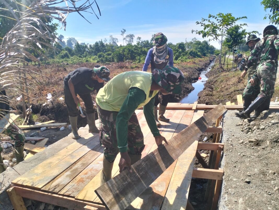 Prajurit Kodim 1705/Nabire terus menunjukkan komitmen dan kerja keras dalam proses pembangunan jembatan yang sangat dinanti oleh masyarakat setempat. Saat ini, progres pekerjaan sudah mencapai 40%, berkat dukungan dan partisipasi aktif dari warga yang terlibat langsung dalam setiap tahap pelaksanaan. Hal ini menciptakan semangat kolektif yang kuat di antara prajurit dan masyarakat, mencerminkan hubungan harmonis antara keamanan dan kemajuan pembangunan.