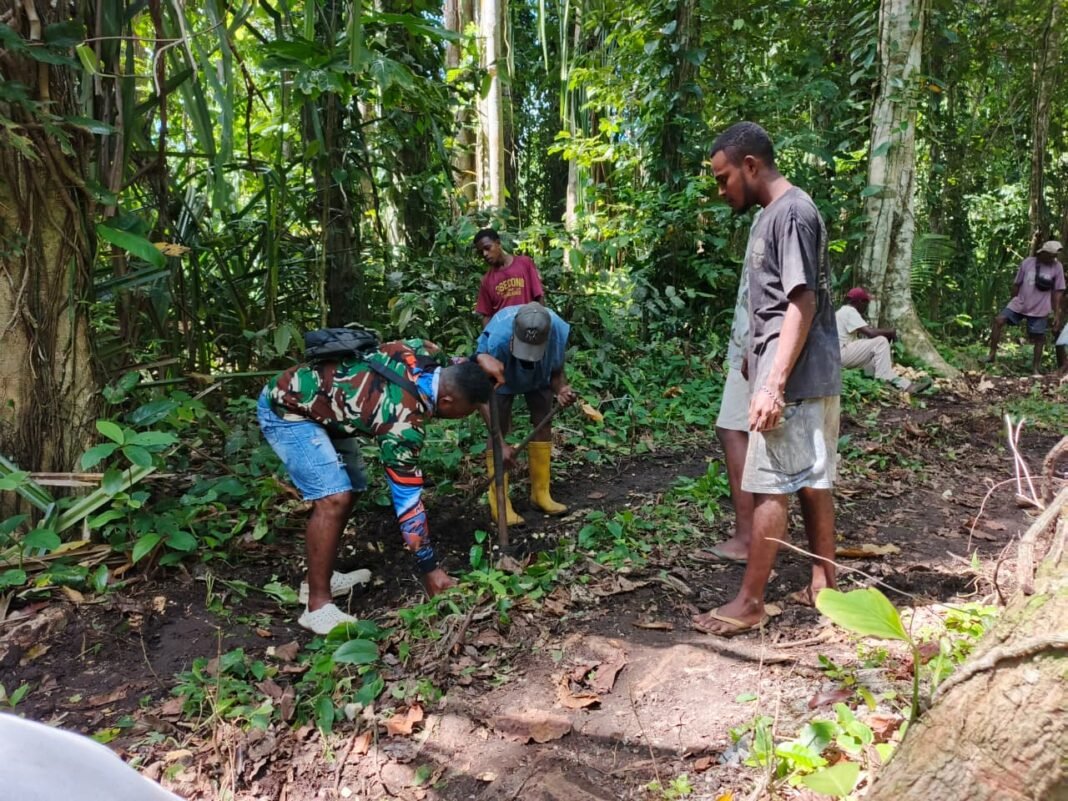 Dalam rangka untuk memperlancar pembangunan jalan di proyek TMMD ke-128, Satgas Kodim 1801/Manokwari bersama masyarakat melaksanakan pembersihan serta perataan jalan di Kampung Tanah Rubuh, Distrik Manokwari Utara. Kegiatan ini menjadi langkah awal yang strategis sebelum dimulainya pengecoran jalan.