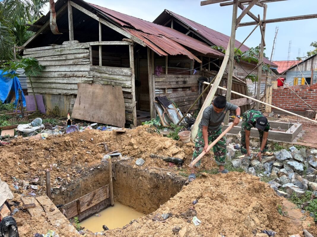 Amolame, Rabu (29/4/2026) — Dalam program TMMD ke-128 oleh Kodim 1430/Konawe Utara, pembangunan fasilitas Mandi, Cuci, Kakus (MCK) telah resmi dimulai. Rangkaian aktivitas diawali dengan penggalian tanah yang dilakukan oleh personel Satgas TMMD dan masyarakat Desa Amolame untuk MCK milik Bapak Hasruddin.