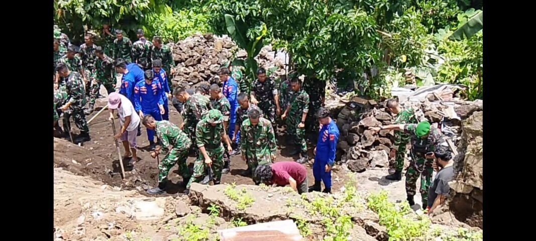 Di tempat lain, tim Kodim juga dilibatkan dalam penanganan di Desa Tumaluntung dan Gereja di Kelurahan Wangurer Barat, yang mengalami kerusakan akibat gempa.