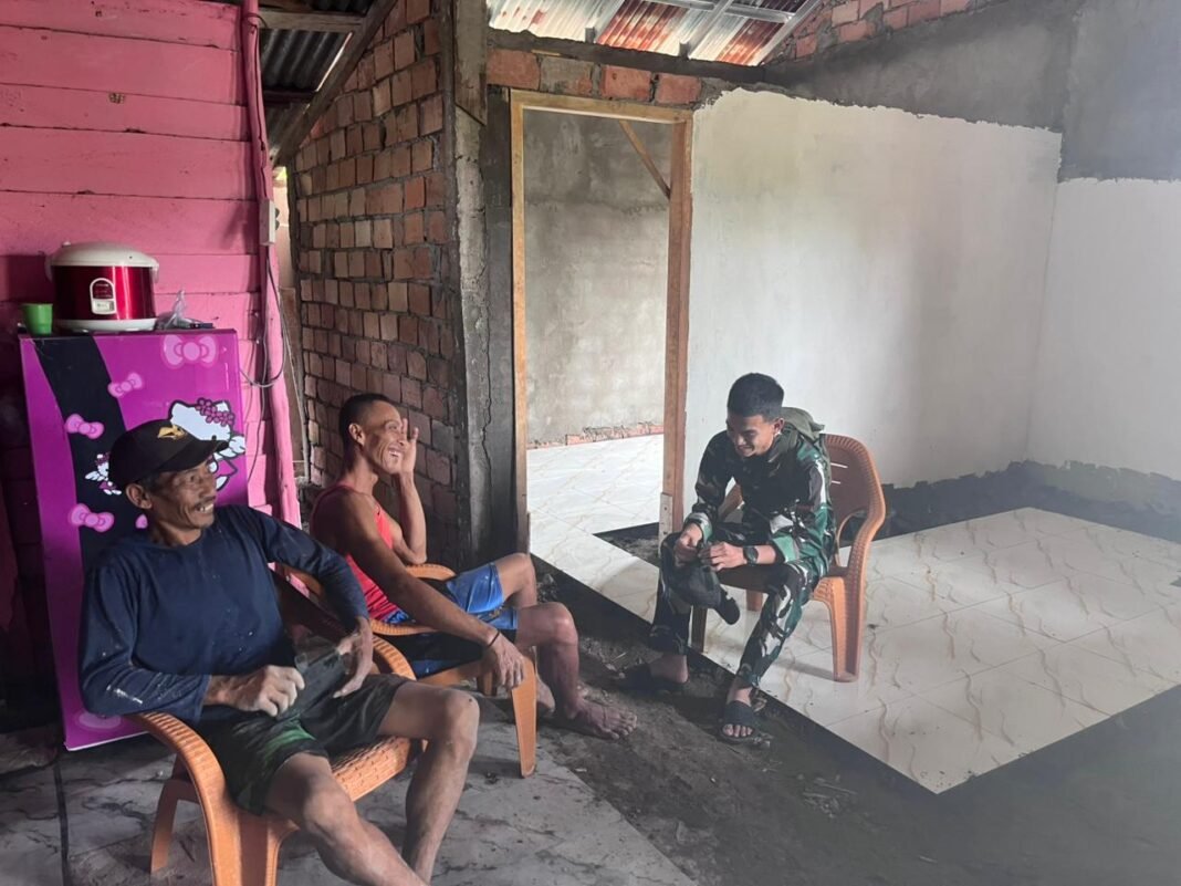 Banyuasin – Kebahagiaan meliputi Bapak Paiman, seorang warga Desa Wonosari di Kecamatan Pulau Rimau, Kabupaten Banyuasin, saat melihat rumahnya yang tengah dibangun oleh Satgas TMMD ke-127 Kodim 0430/Banyuasin, hampir selesai dikerjakan. Pembangunan rumah ini merupakan bagian dari program Renovasi Rumah Tidak Layak Huni (RTLH) yang dilakukan dalam rangka kegiatan TMMD.
