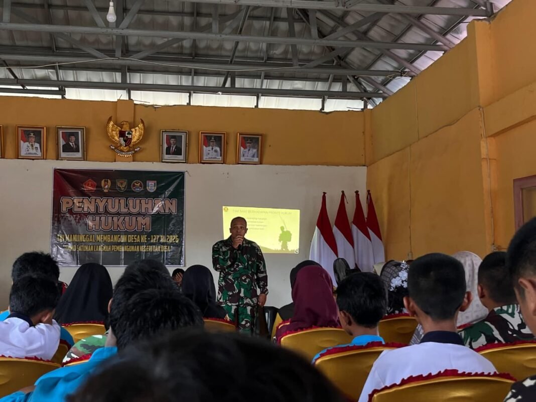 Banyuasin, 27 Februari 2026 – Satgas TMMD ke-127 dari Kodim 0430/BA melaksanakan penyuluhan hukum yang ditujukan untuk mendukung program nonfisik TMMD di Desa Wonosari, Kecamatan Pulau Rimau. Kegiatan tersebut menampilkan Pelda Tri Susilo, S.H., Bamin Kumrem Korem 044/Gapo, sebagai narasumber utama.