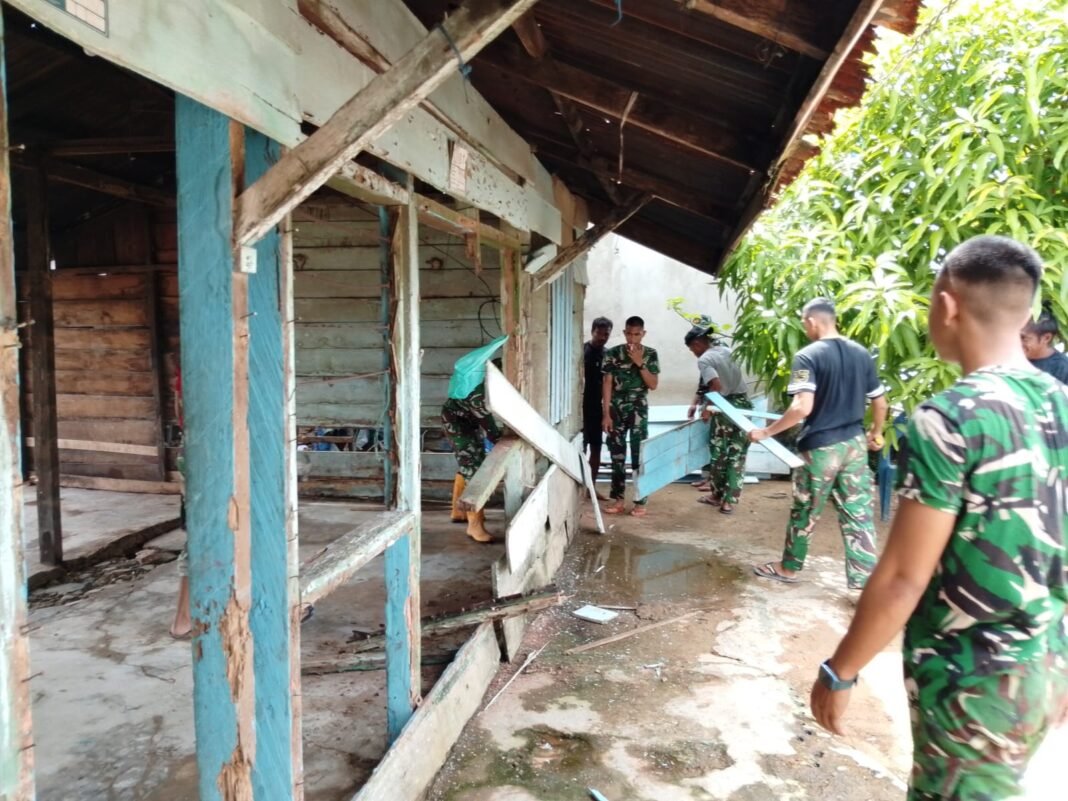 Kendari – Satgas TNI Manunggal Membangun Desa (TMMD) ke-127 Kodim 1417/Kendari telah memulai pelaksanaan program sosial dengan melakukan pembongkaran Rumah Tidak Layak Huni (RTLH) yang dimiliki oleh Ibu Natia, seorang nelayan di Kelurahan Petoaha, Kecamatan Nambo, Kota Kendari, pada Kamis (12/2).
