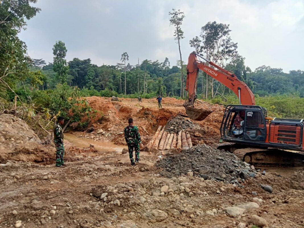 Di lapangan, selain pembangunan badan jalan, personel Satgas TMMD juga tengah mengerjakan pembuatan drainase serta jembatan darurat yang akan menjadi bagian penting dari struktur jalan tersebut.
