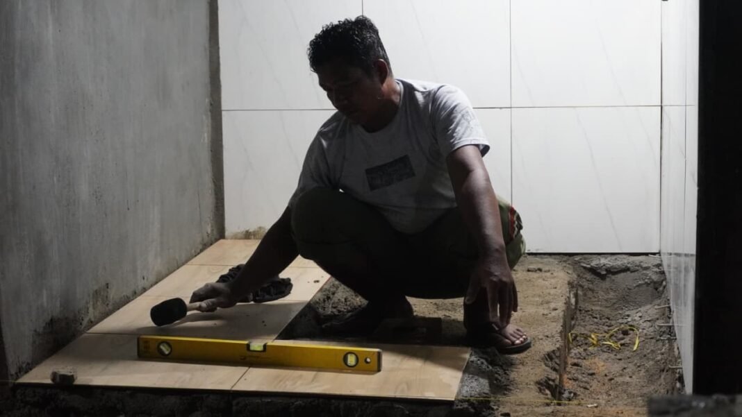 Kotawaringin Timur, 23 Februari 2026 – Proyek sasaran fisik program TNI Manunggal Membangun Desa (TMMD) ke-127 mengalami kemajuan yang signifikan. Pada Senin, 23 Februari 2026, anggota Satgas TMMD dari Kodim 1015/Sampit bersama masyarakat setempat mulai memasang keramik lantai untuk tempat wudhu dan MCK di Mushola Mudalil Muttakin, yang terletak di Desa Tri Buana, Kecamatan Telaga Antang.