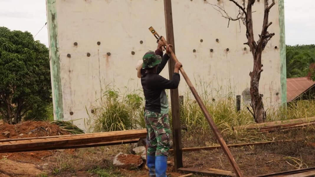 Kotawaringin Timur – Kepedulian nyata Satgas TNI Manunggal Membangun Desa (TMMD) Reguler ke-127 Kodim 1015/Sampit kembali tercermin saat mereka membantu warga dalam mendirikan tiang rumah di Desa Tribuana, Kecamatan Antang Kalang, Kabupaten Kotawaringin Timur, pada Kamis (12/02/2026). Bantuan ini diberikan ketika personel Satgas TMMD tengah melaksanakan pembangunan siring jalan di wilayah desa tersebut. Salah satu anggota Satgas, Pratu Dedi, secara sigap menghentikan pekerjaannya untuk membantu warga yang mengalami kesulitan dalam mendirikan tiang rumah. Warga setempat, Bapak Toga, mengungkapkan rasa terharunya atas kepedulian anggota Satgas TMMD. Beliau menyatakan bahwa bantuan tersebut diberikan secara spontan tanpa ada permintaan sebelumnya. “Kesigapan bapak-bapak TNI memang luar biasa. Tanpa banyak bicara mereka langsung membantu, sehingga pekerjaan saya bisa berjalan lancar. Saya mengucapkan terima kasih kepada Satgas TMMD,” ungkap Bapak Toga. Ia menambahkan bahwa rumah yang sedang dibangun adalah miliknya sendiri dan dirinya tidak pernah meminta bantuan. Namun, kepedulian anggota Satgas TMMD membuat proses pembangunan rumahnya menjadi lebih ringan. Kehadiran Satgas TMMD di Desa Tribuana tidak hanya terfokus pada pembangunan infrastruktur, tetapi juga menunjukkan kepedulian sosial terhadap masyarakat, menjadi bukti nyata kemanunggalan TNI dengan rakyat dalam kehidupan sehari-hari.