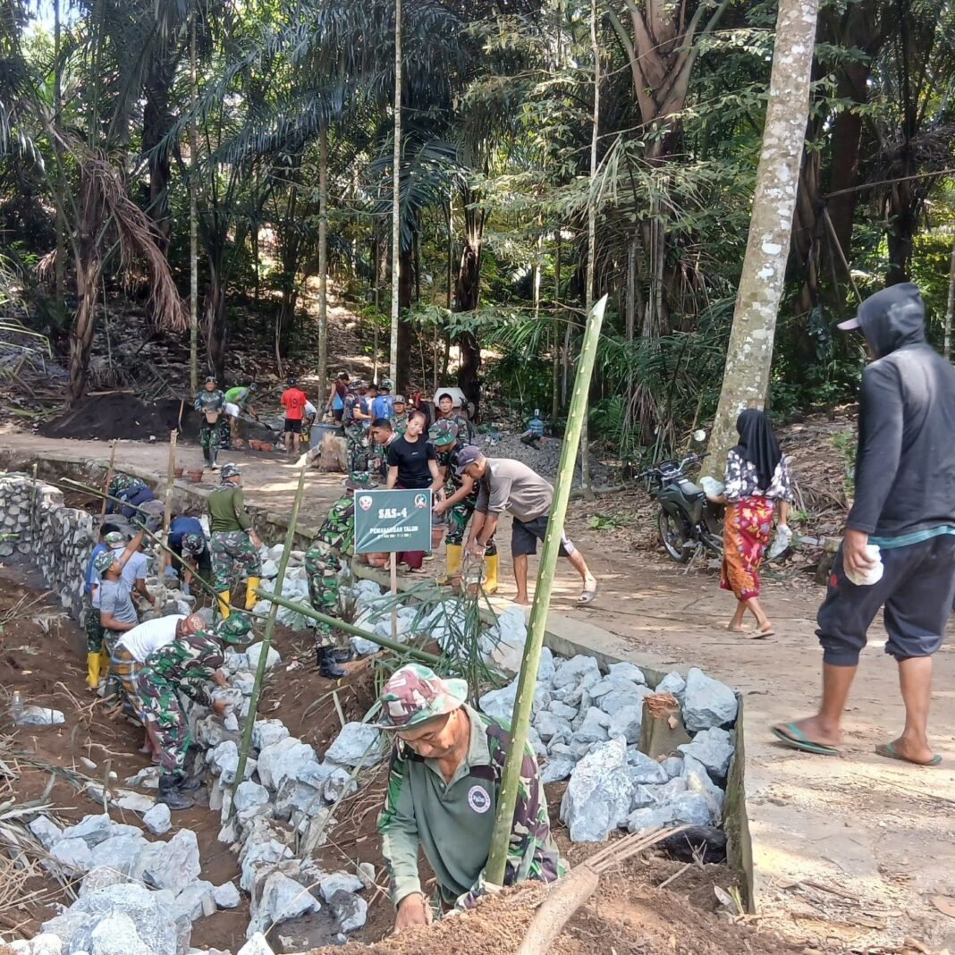 Pembangunan talud ini menjadi salah satu bagian penting dalam sasaran fisik TMMD yang bertujuan memperkuat infrastruktur pedesaan dan mencegah longsor di area jalan serta pemukiman warga. Meski terik matahari menyengat, semangat kebersamaan antara TNI dan masyarakat tidak surut. Suara cangkul, sorak semangat, dan tawa ringan menjadi irama khas dari kerja kolektif penuh makna itu.