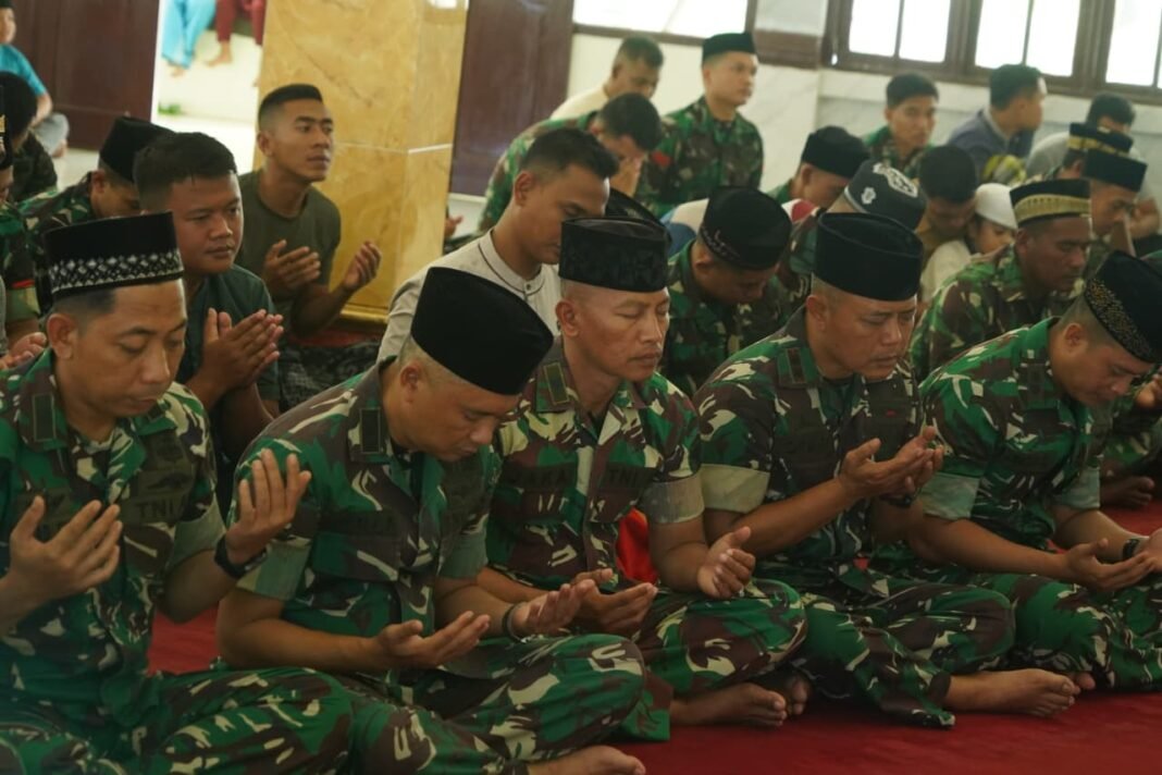 Meulaboh – Dalam rangka memperingati Hari Pahlawan Tahun 2025, Korem 012/Teuku Umar menggelar doa bersama usai pelaksanaan Salat Jumat di Masjid Al-Ikhlas Korem 012/TU, Meulaboh, Kabupaten Aceh Barat, Jumat (8/11/2025).