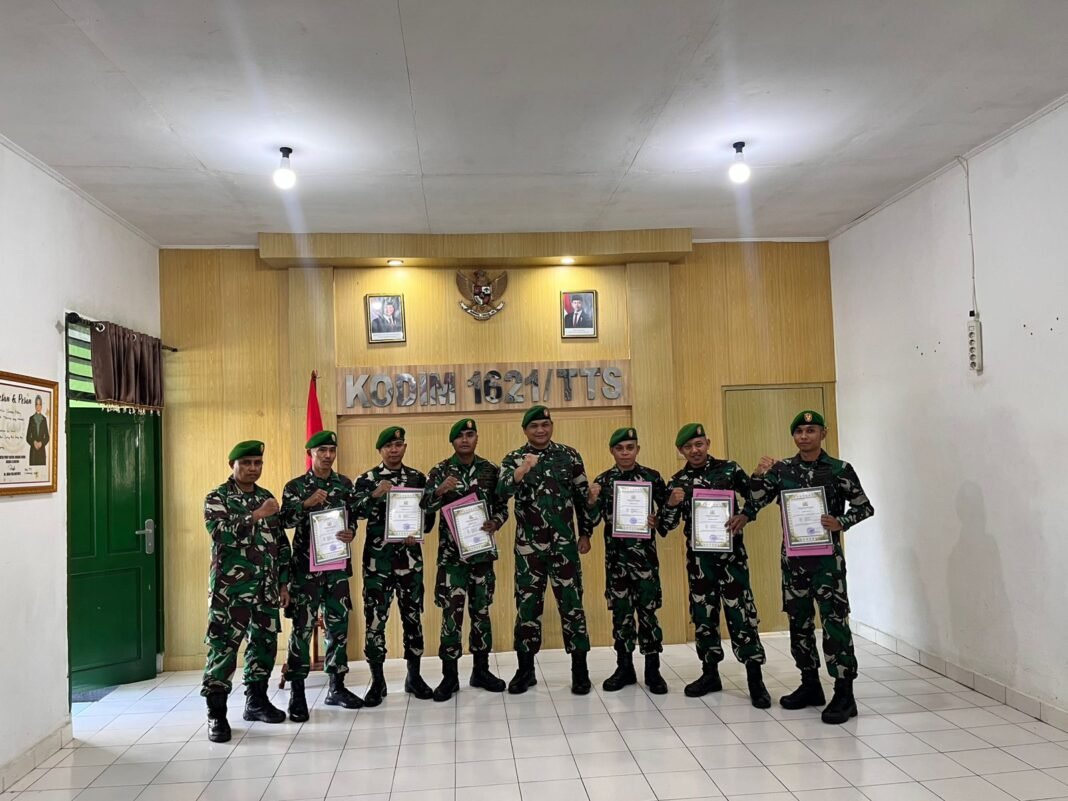 SOE, TTS – Komando Distrik Militer (Kodim) 1621/TTS melaksanakan Acara Korps Raport Pindah Satuan bagi enam Bintara Abit dari Secabareg TNI AD Gelombang I Tahun Anggaran 2026. Kegiatan tersebut berlangsung di Aula Makodim 1621/TTS, yang terletak di Jalan Gajah Mada, Kelurahan Cendana, Kecamatan Kota SoE, Kabupaten TTS, pada hari Selasa, 3 Maret 2026, pukul 08.00 WITA.