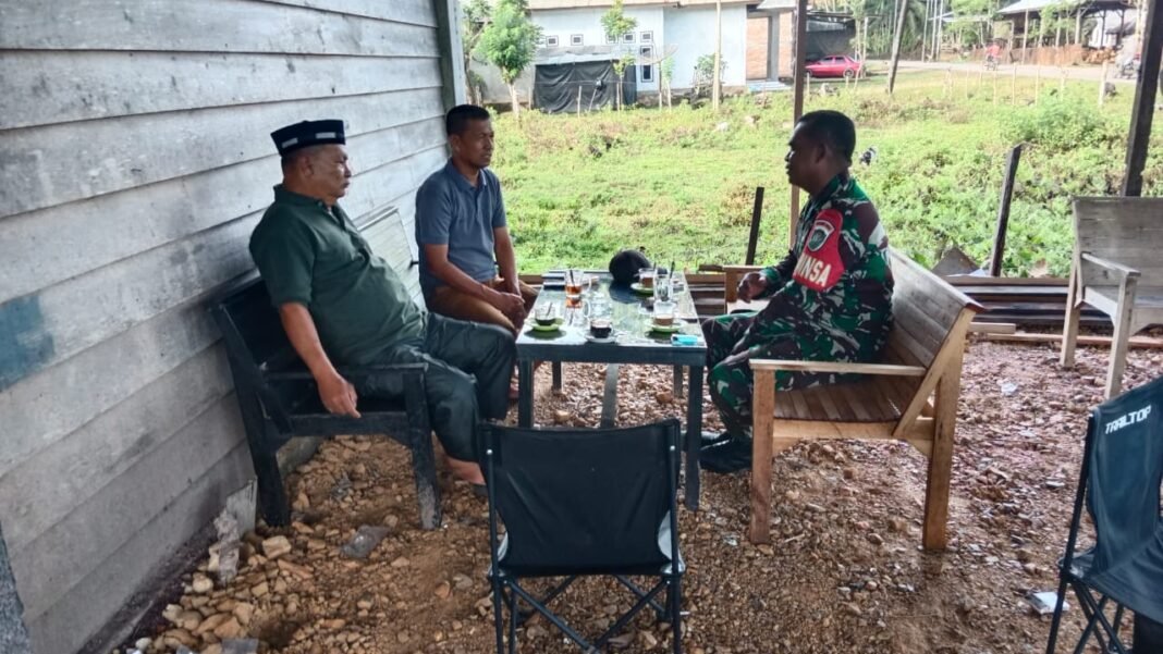 ACEH JAYA — Babinsa Posramil Darul Hikmah Kodim 0114/Aceh Jaya, Sertu Haslimin, melaksanakan komunikasi sosial (komsos) bersama Pak Keuchik dan Ketua Pemuda Desa Chot Pange, Kecamatan Darul Hikmah, Jumat (13/02/2026).