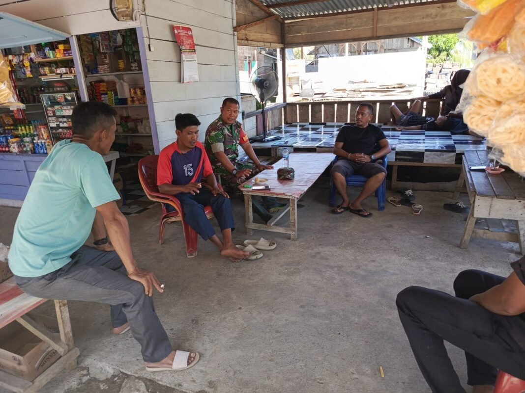ACEH JAYA — Babinsa Posramil Pasie Raya Kodim 0114/Aceh Jaya, Sertu Syamsul, melaksanakan komunikasi sosial bersama aparatur gampong di Desa Tuwi Kareung, Kecamatan Pasie Raya, Senin (16/02/2026).