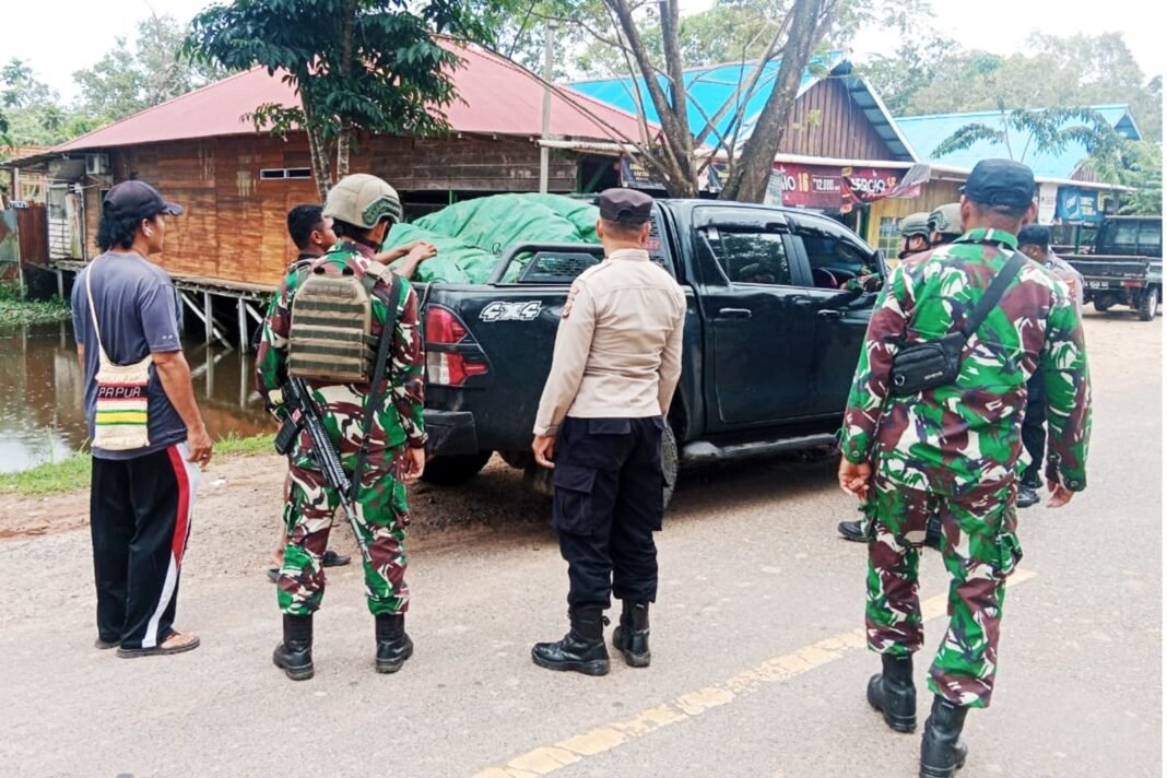 Merauke – Dalam rangka menjaga situasi keamanan dan ketertiban masyarakat (Kamtibmas) menjelang Hari Raya Idul Fitri 1447 H/2026 M, aparat gabungan melaksanakan kegiatan sweeping di wilayah perbatasan, tepatnya di Jln. Trans Papua, Kampung Sota, Distrik Sota, Kabupaten Merauke – Provinsi Papua Selatan. Selasa (17/3/26).