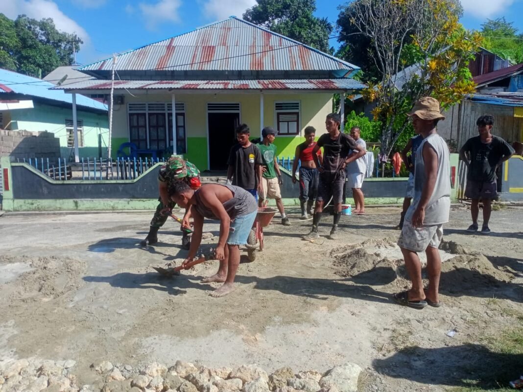 Halmahera Tengah – Dalam upaya memperkuat infrastruktur dan kesejahteraan masyarakat, Babinsa dari Koramil 1512-02/Patani, Sertu Bakri Seri, menggelar kegiatan gotong royong perbaikan jalan setapak di Desa Gemia, Kecamatan Patani Utara, pada Jumat, 9 Januari 2026. Kegiatan ini melibatkan masyarakat setempat untuk melakukan pengecoran jalan yang memudahkan akses transportasi antar desa.