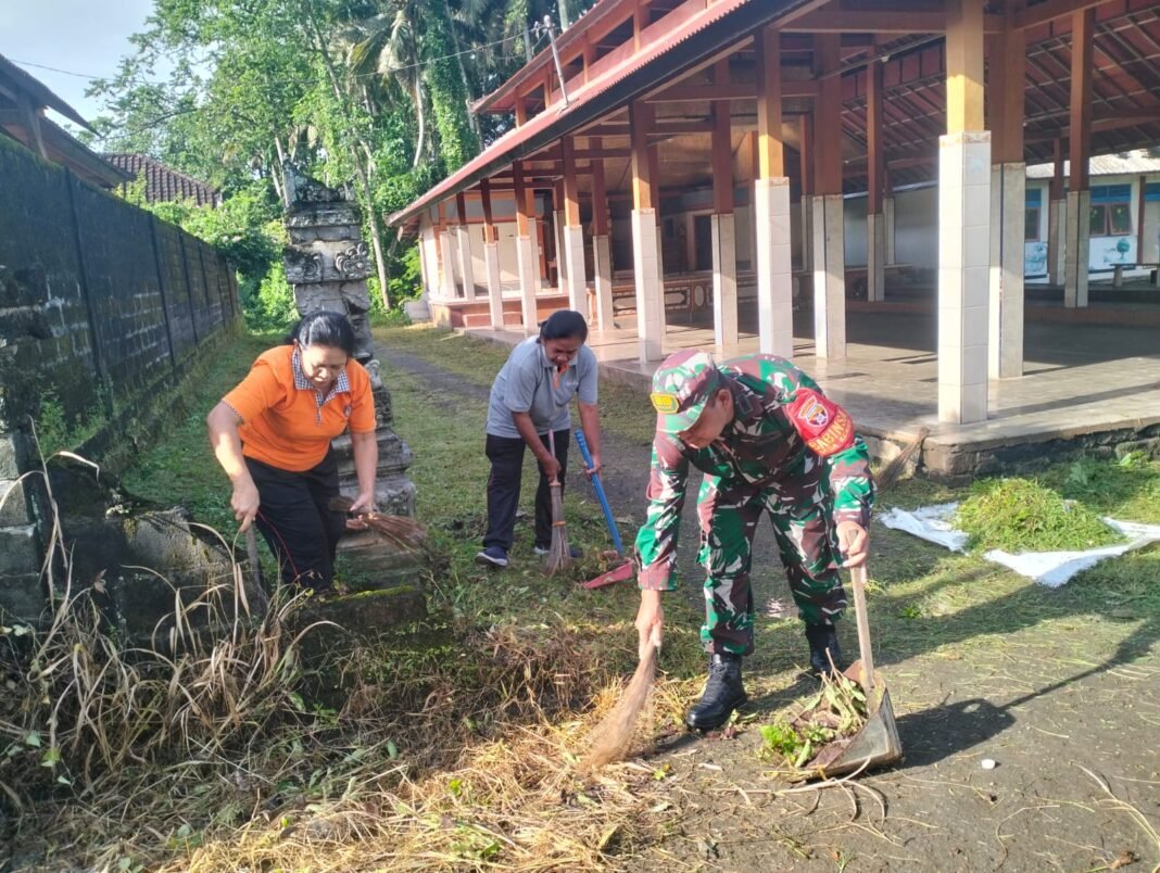 Tabanan – Dalam upaya menciptakan lingkungan yang bersih, TNI dan pemerintah desa menunjukkan sinergitas melalui kegiatan karya bakti pembersihan lingkungan yang dilaksanakan di Gedung Serba Guna Desa Kesiut. Kegiatan ini dihadiri oleh Babinsa Desa Kesiut, Pelda I Komang Widiarsana dari Koramil 1619-05/Kerambitan, serta Perbekel beserta staf Desa Kesiut, dan berlangsung pada Kamis, 12 Februari 2026.