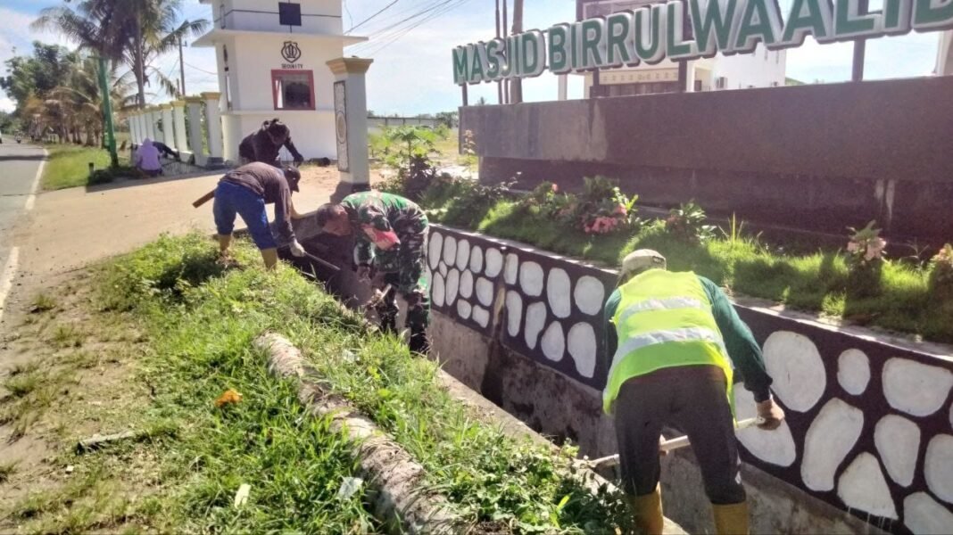 SIDRAP – Pelda Andi Akbar, anggota Babinsa Desa Ciro-Ciroe dari Koramil 1420-04/Watang Pulu, melaksanakan kegiatan karya bakti pembersihan saluran air di sekitar Masjid Birrul Walidain, yang terletak di Dusun II Mattiro, Desa Ciro-Ciroe, Kecamatan Watang Pulu, Kabupaten Sidrap, pada Kamis (12/03/2026).