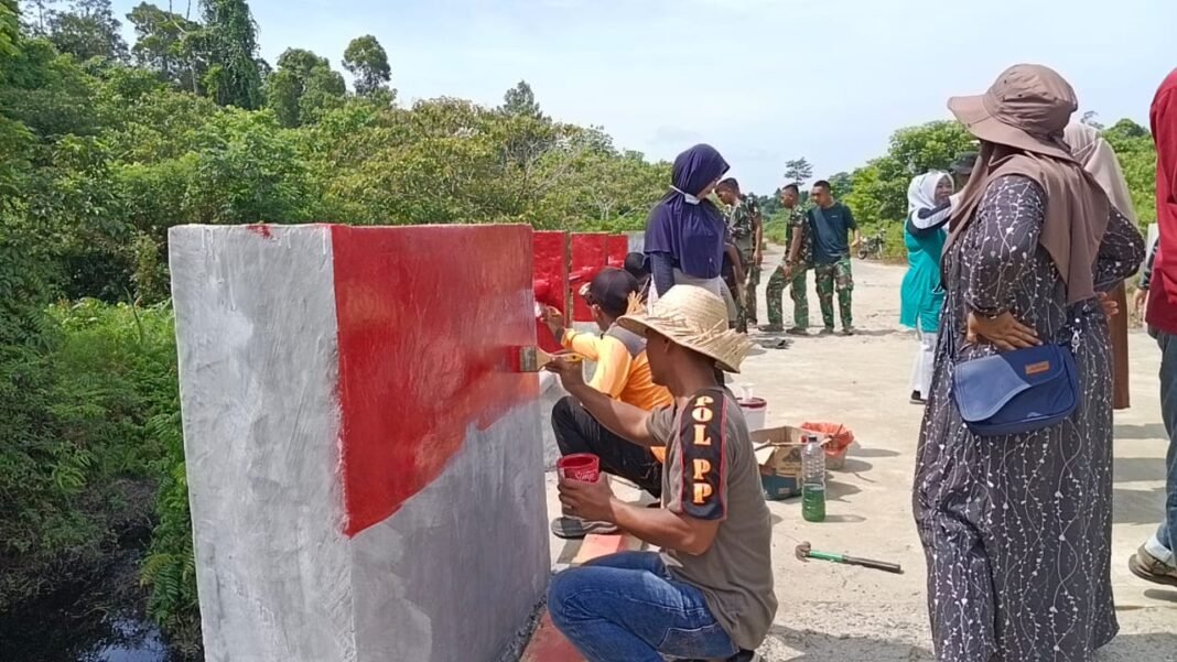 Pada tahap akhir pengerjaan, personel TNI AD bersama masyarakat setempat kompak melakukan pengecatan jembatan agar hasilnya lebih rapi dan tahan lama. Kebersamaan ini menjadi wujud sinergi antara TNI dan warga dalam mendukung pembangunan infrastruktur di daerah.