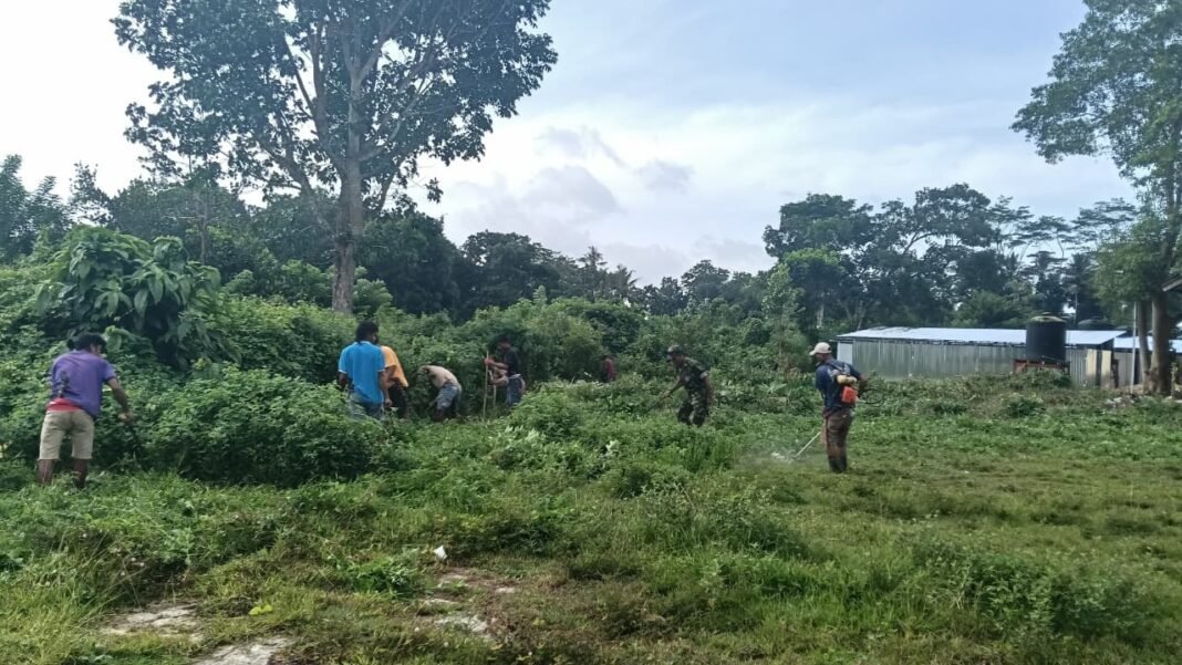 SUMBA TENGAH – Pada hari Jumat, 6 Maret 2026, Serka Suherman dari Babinsa Koramil 03/Katikutana, yang tergabung dalam Kodim 1613/Sumba Barat, berkolaborasi dengan masyarakat setempat dalam kegiatan gotong royong. Tujuan dari kegiatan ini adalah untuk membersihkan dan mempersiapkan lokasi yang akan digunakan sebagai hunian sementara bagi anggota Batalyon Teritorial Pembangunan yang bertugas di Desa Anakalang, Kecamatan Katikutana, Kabupaten Sumba Tengah.