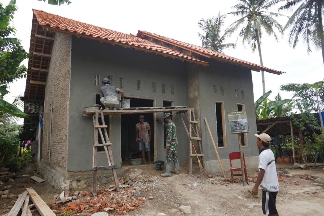 Pesawaran – Proses pembangunan Rumah Tidak Layak Huni (RTLH) dalam kegiatan TNI Manunggal Membangun Desa (TMMD) ke-127 Kodim 0421/LS terus berlangsung dengan baik. Saat ini, rumah milik Sdr. Yusmawati dan Bpk. Heri S telah memasuki tahap pengacian pada dinding luar.
