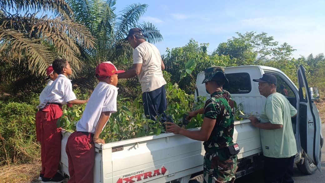 Pangkalan Banteng – Program TMMD Ke-128 Kodim 1014/Pbn terus berlanjut dengan kegiatan penghijauan melalui penanaman bibit pohon di Desa Sungai Hijau, Kecamatan Pangkalan Banteng, Rabu (29/04/2026).