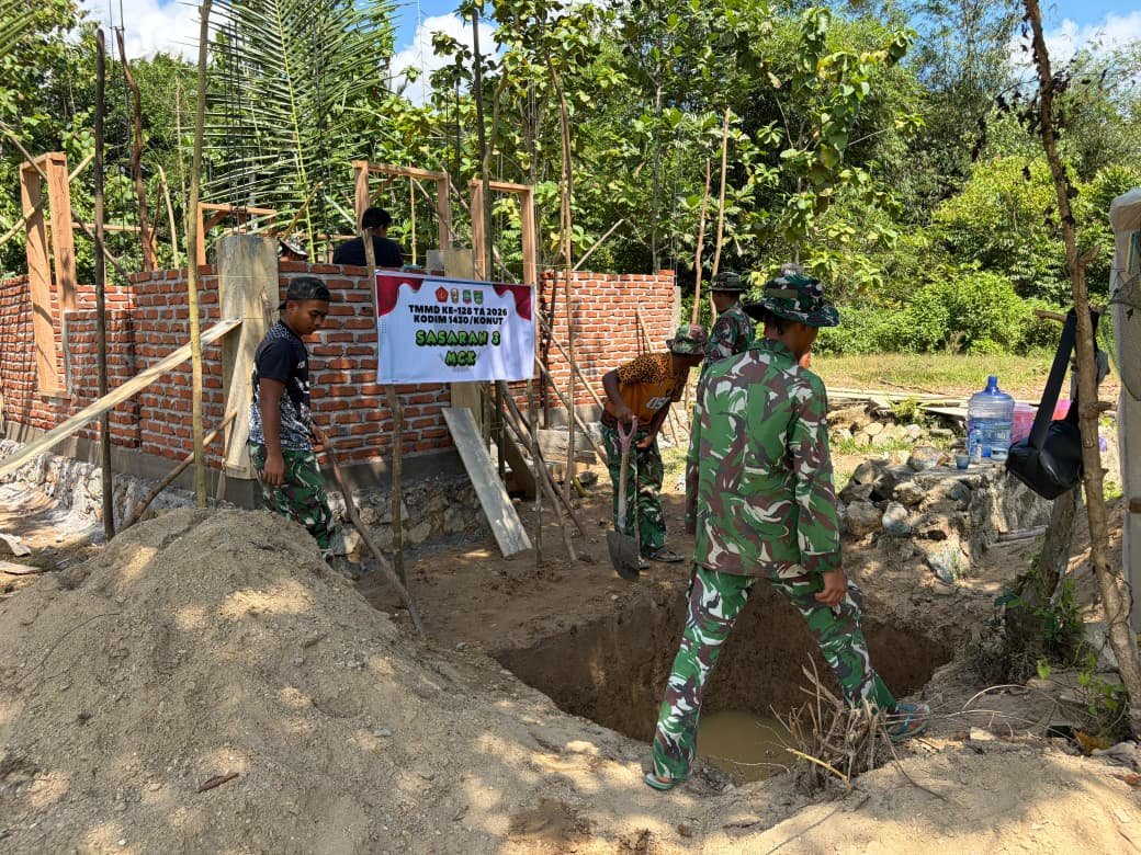 KONAWE UTARA – Satgas TMMD ke-128 Kodim 1430/Konawe Utara memperlihatkan semangat pantang menyerah dalam melaksanakan sasaran fisik. Salah satu upaya yang dilakukan adalah mempercepat penggalian MCK pada sasaran 3 yang saat ini menjadi fokus kerja mereka, pada hari Kamis (30/4/2026).