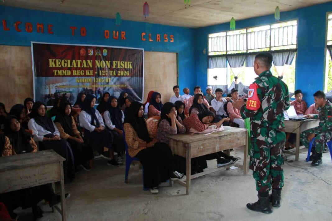 Tolitoli – Program TNI Manunggal Membangun Desa (TMMD) Ke-127 Tahun Anggaran 2026 tidak hanya terfokus pada aspek pembangunan fisik, melainkan juga mencakup kegiatan nonfisik, termasuk penyuluhan Wawasan Kebangsaan (Wasbang) bagi siswa di MTS Al-Maruf yang terletak di Dusun Ogomolobu, Desa Oyom, Kecamatan Lampasio, Kabupaten Tolitoli, pada Selasa, 11 Februari 2026.