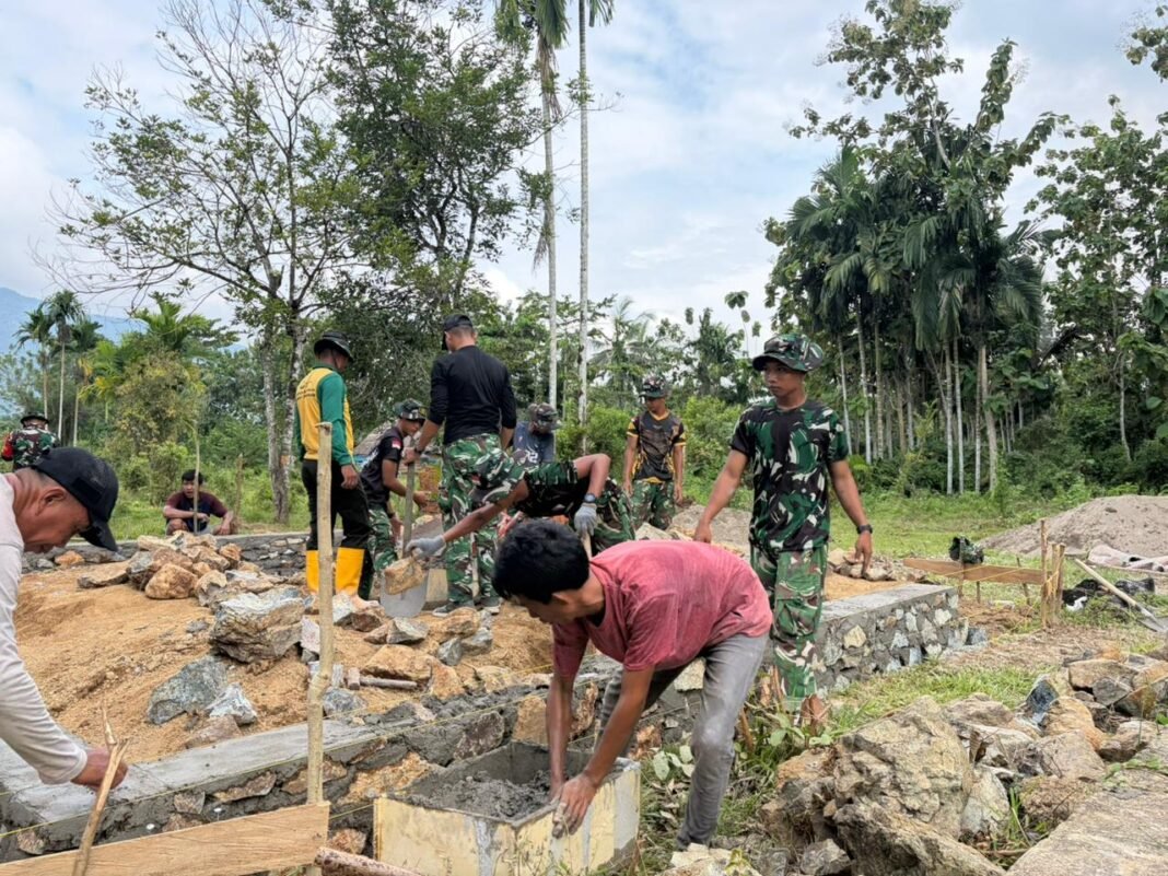 Konawe Utara – Suasana kebersamaan menggelora di Desa Amolame, yang terletak di Kecamatan Andowia, Kabupaten Konawe Utara. Program TNI Manunggal Membangun Desa (TMMD) ke-128 yang dilaksanakan oleh Kodim 1430/Konawe Utara direspons dengan antusias oleh masyarakat, khususnya Bapak Hasruddin (39), yang merupakan penerima manfaat dari proyek pembangunan Rumah Tidak Layak Huni (RTLH). Kegiatan ini dimulai pada Sabtu (25/42026).