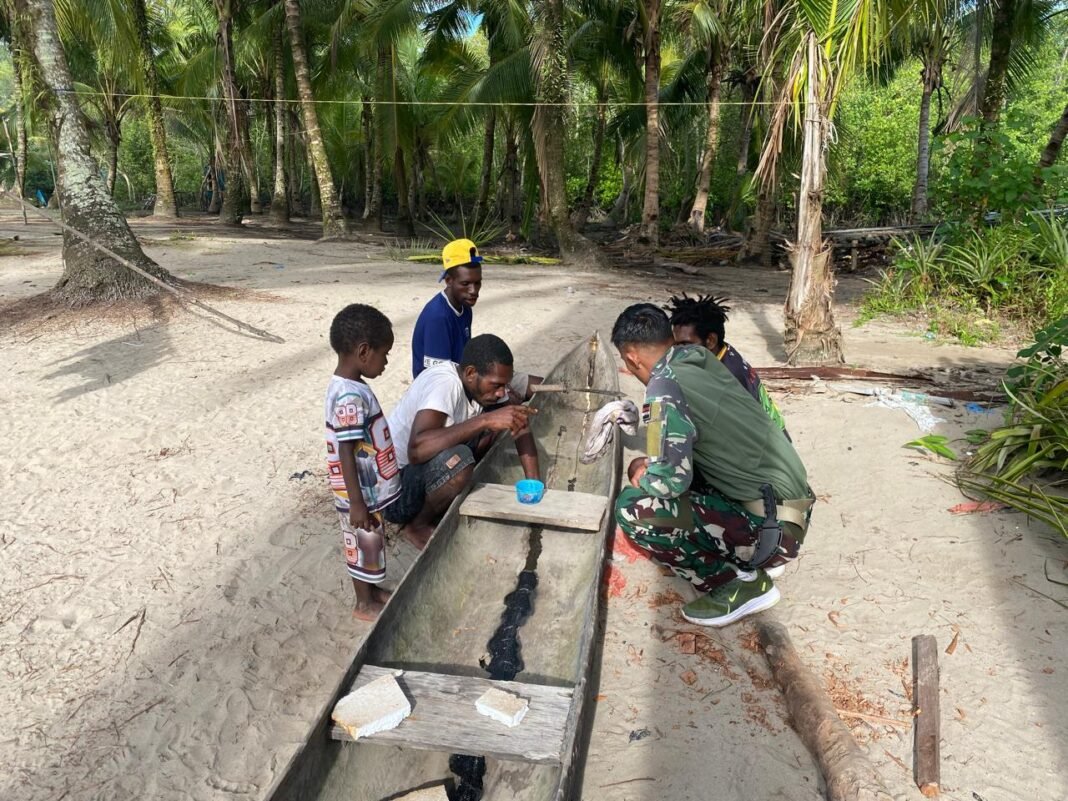 Timika – Program TNI Manunggal Membangun Desa (TMMD) ke-128 tidak hanya bertujuan untuk memperbaiki infrastruktur, tetapi juga untuk mempererat rasa kebersamaan. Kegiatan ini terlihat jelas melalui program komunikasi sosial (Komsos) yang secara rutin dilakukan oleh anggota Satgas Kodim 1710/Mimika dengan masyarakat Kampung Keakwa.