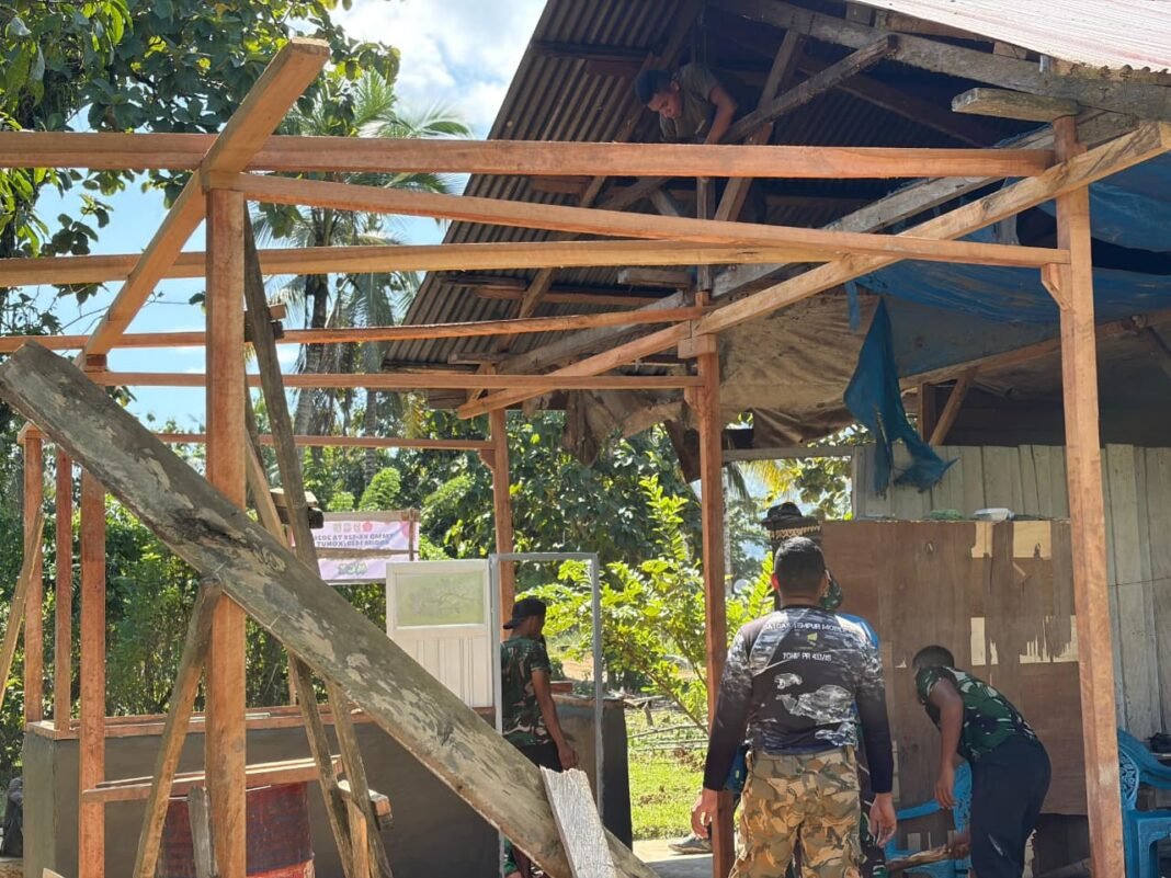 KONAWE UTARA – Melalui program TMMD ke-128, Kodim 1430/Konawe Utara menawarkan harapan baru untuk masyarakat. Salah satu warganya, Bapak Herdin, sedang menjalani proses pembangunan RTLH yang saat ini berada di tahap pemasangan papan semi permanen yang krusial, dilaksanakan pada tanggal Kamis (30/4/2026).