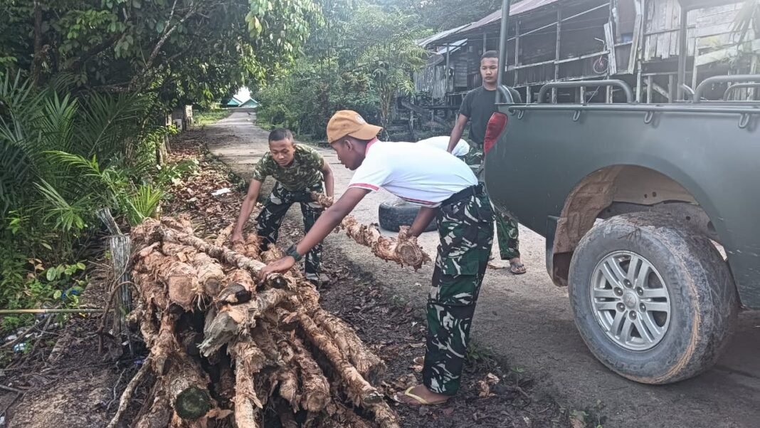 Sukamara – Dalam upaya membangun Jembatan Perintis Garuda, semangat gotong royong antara anggota TNI dan warga setempat terlihat jelas. Pembangunan yang terletak di bawah naungan Kodim 1014/Pbn ini bertujuan menghubungkan Desa Petarikan, Kecamatan Sukamara, dengan Desa Jihing, Kecamatan Balai Riam. Saat ini, proyek ini sudah memasuki tahap awal, yakni persiapan kayu untuk pondasi atau cerucuk, pada tanggal 10 April 2026.