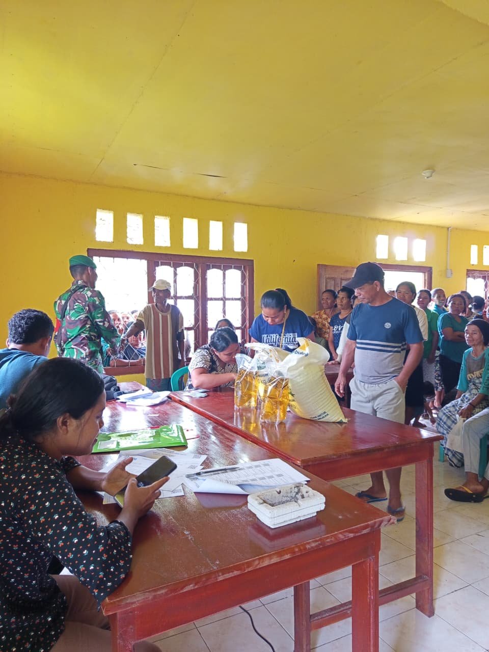 TNI Siap Dukung Pemerintah: Pembagian Bantuan Pangan di Desa Komba Berlangsung Lancar
