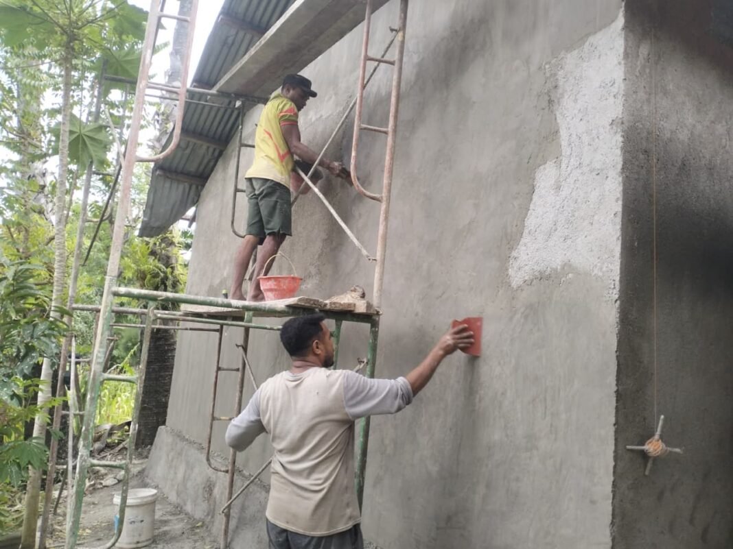Setiap langkah dalam pengerjaan dilakukan dengan ketelitian yang tinggi. Dinding-dinding rumah dirapikan untuk memastikan cat dapat melekat sempurna, memberikan kesan yang bersih dan estetis. Selain itu, pemasangan lisplang dilakukan dengan rapi untuk melindungi tepi atap sekaligus meningkatkan penampilan bangunan secara keseluruhan.
